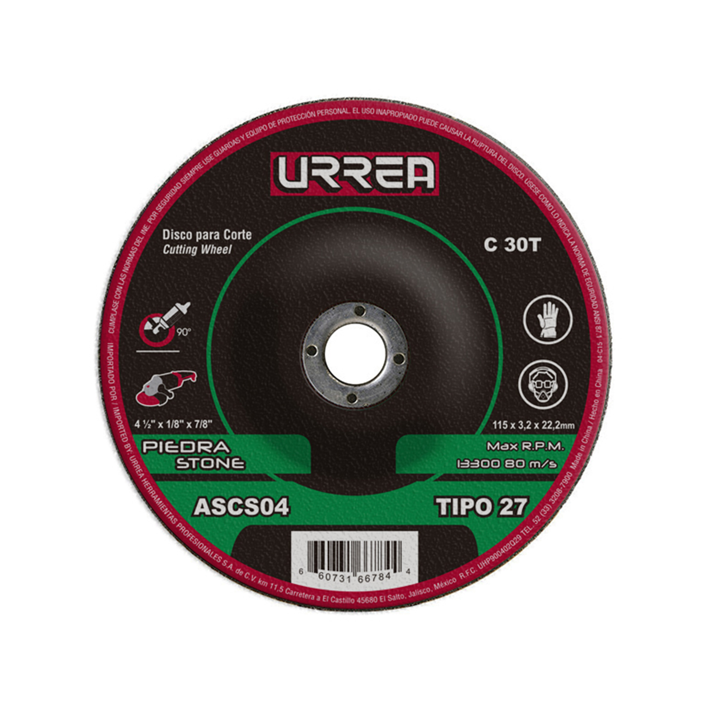 Disco abrasivo tipo 27 para piedra 4-1/2" x 1/8" Urrea 5 piezas