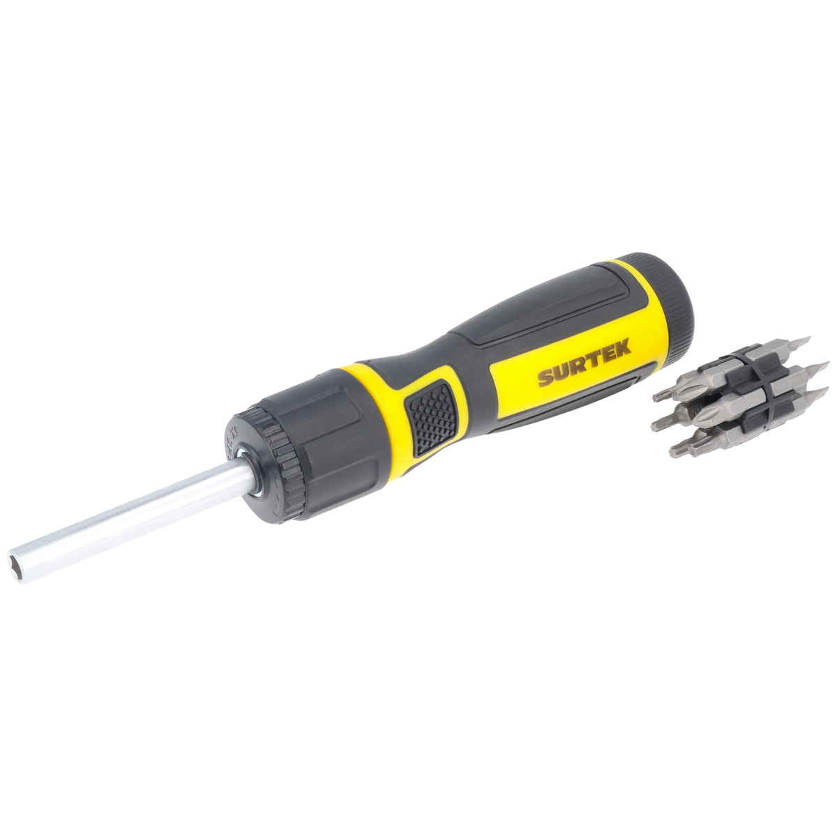 Destornillador con mango bimaterial de matraca reversible 5X con puntas int