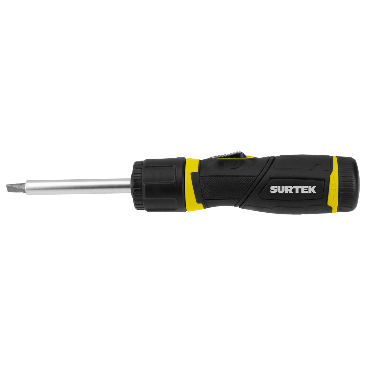 Destornillador con mango bimaterial flexible de matraca reversible 5X con p