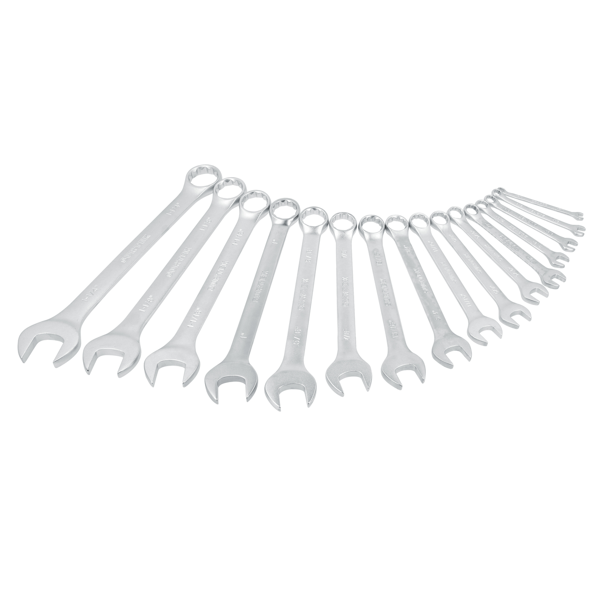 Juego de llaves combinadas satinadas en pulgadas, 12 puntas, 16 piezas en e