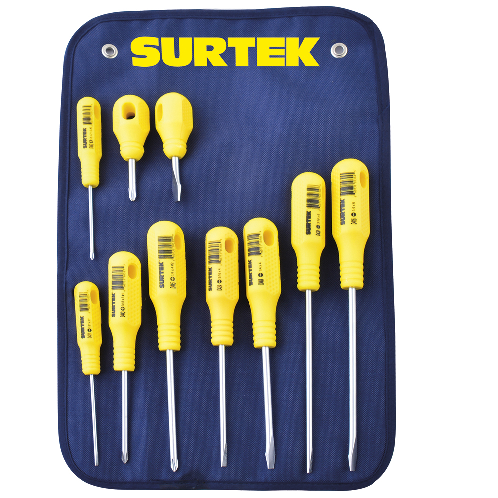 Juego de destornilladores con mango amarillo combinados, 10 piezas en estuc