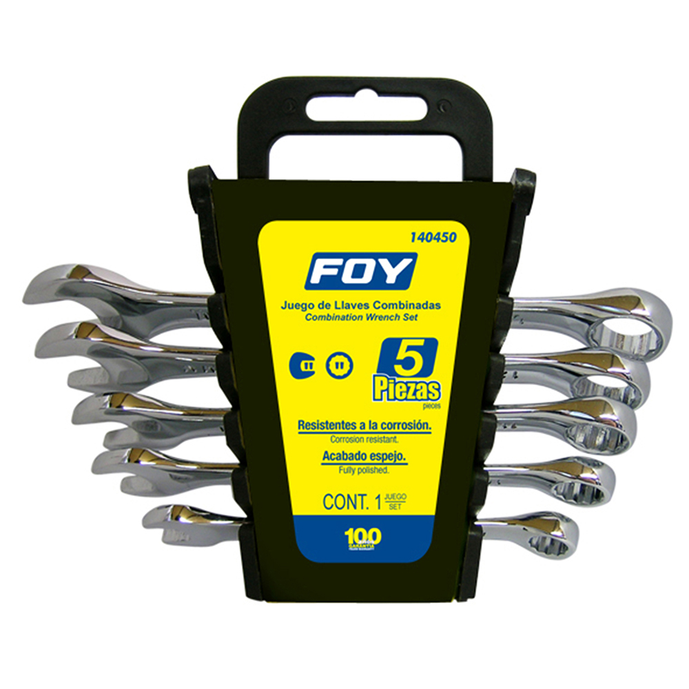 Juego de llaves combinadas pulido espejo en pulgadas, 12 puntas, 5 piezas e