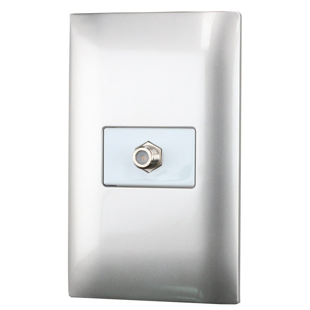 Placa 1 toma para TV 1/3, línea Americana, color plata Surtek