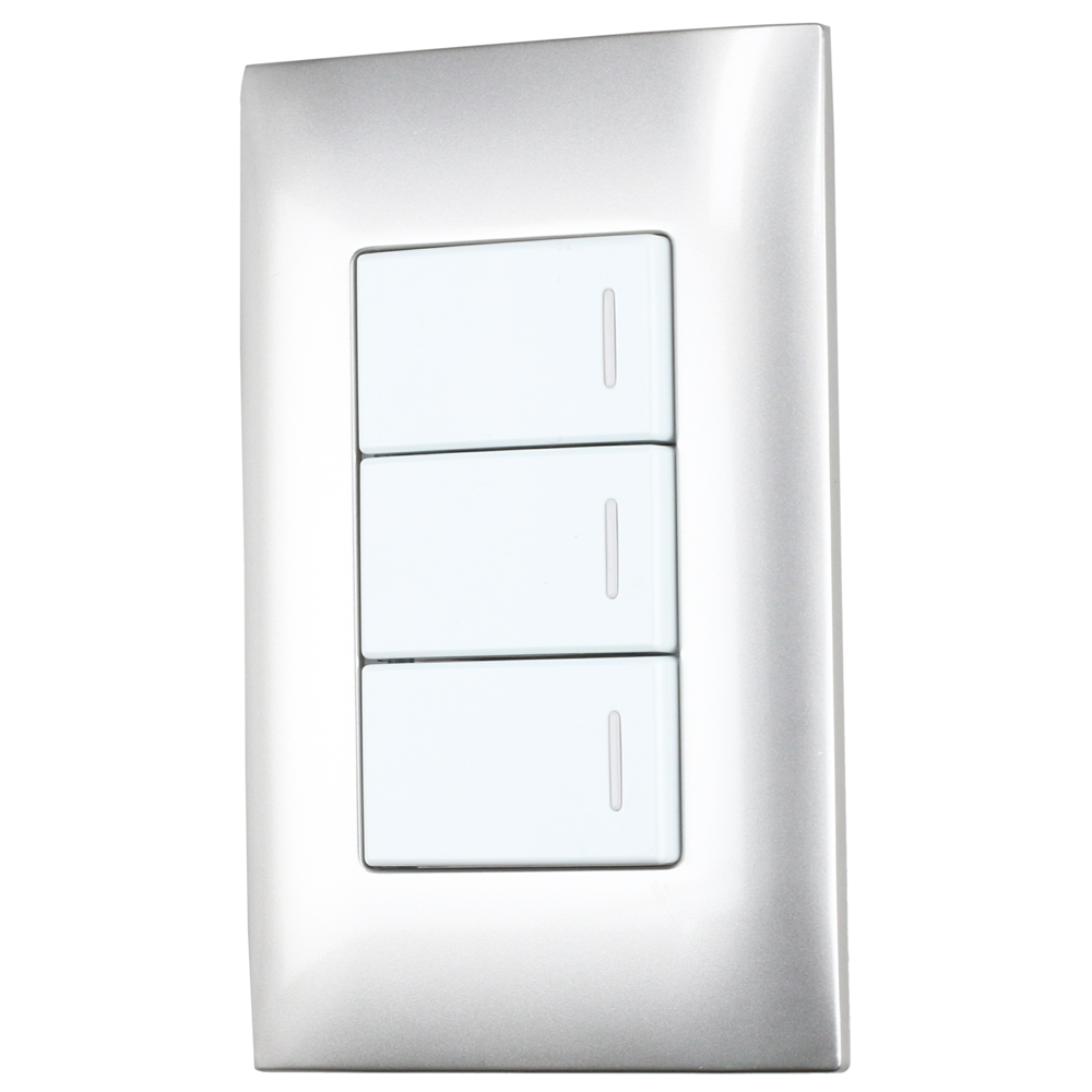 Placa 3 Interruptor 1/3, línea Americana, color plata Surtek