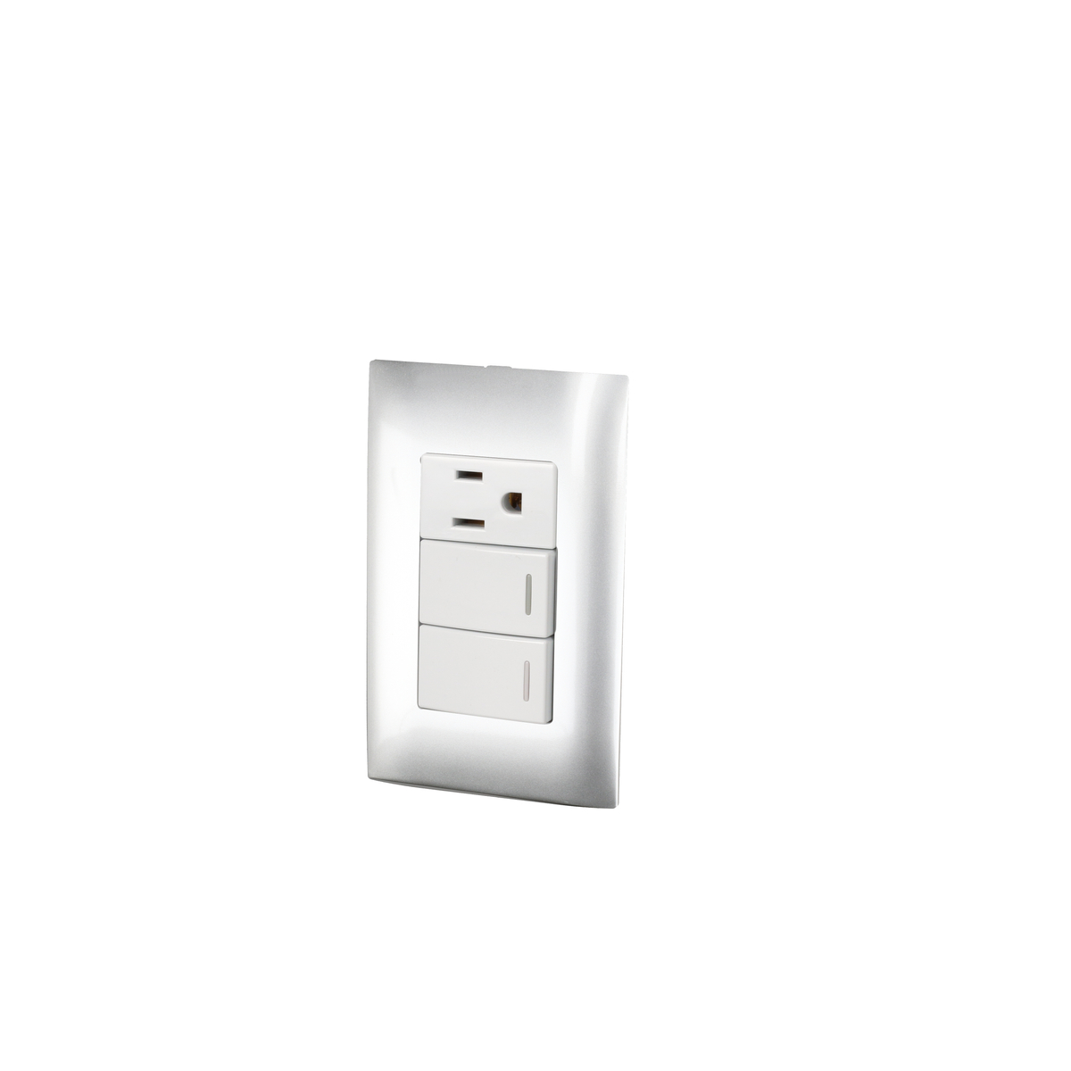 Placa 2 Switch 1 contacto 1/3, línea Americana, color blanco Surtek