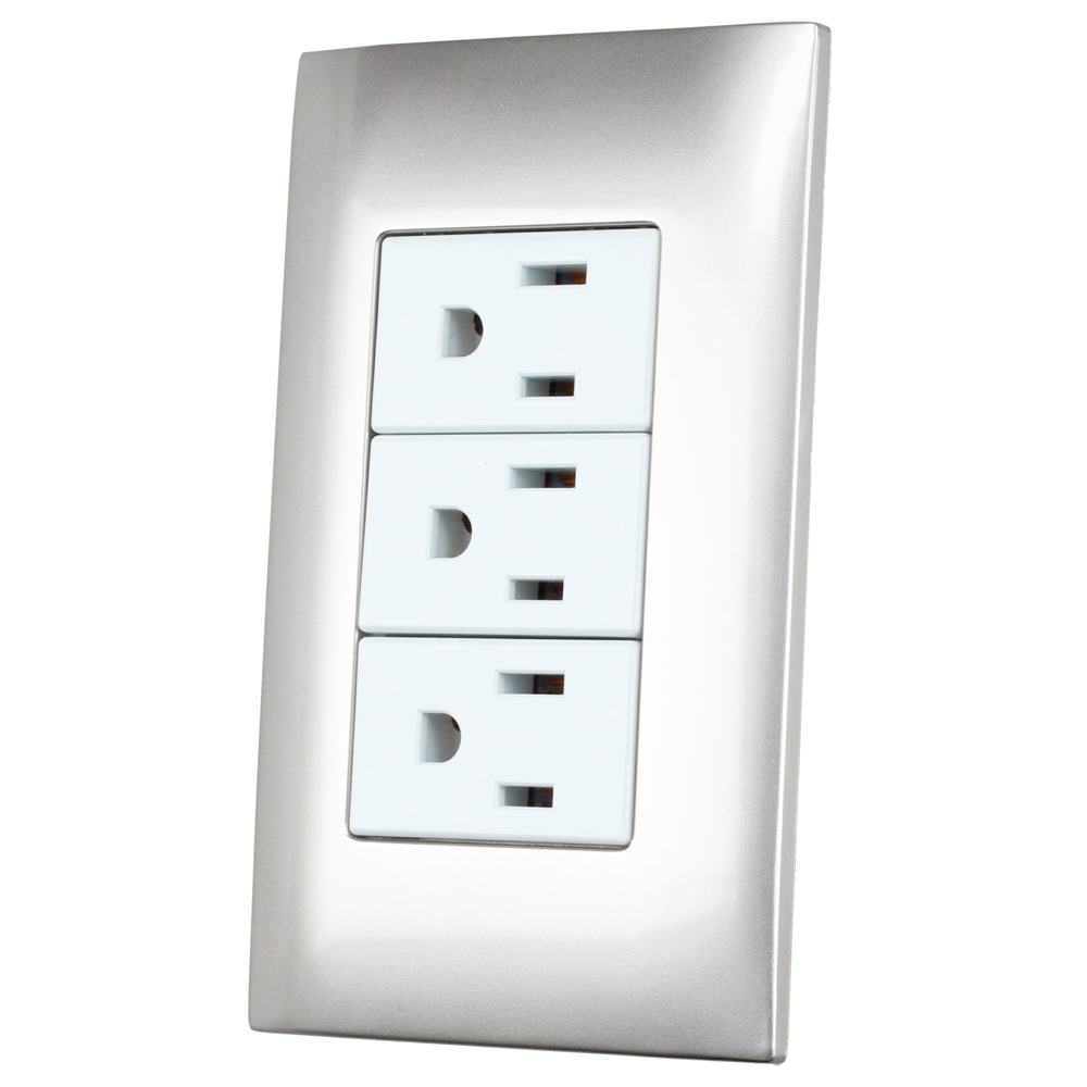 Placa 3 contactos 1/3, línea Americana, color plata Surtek