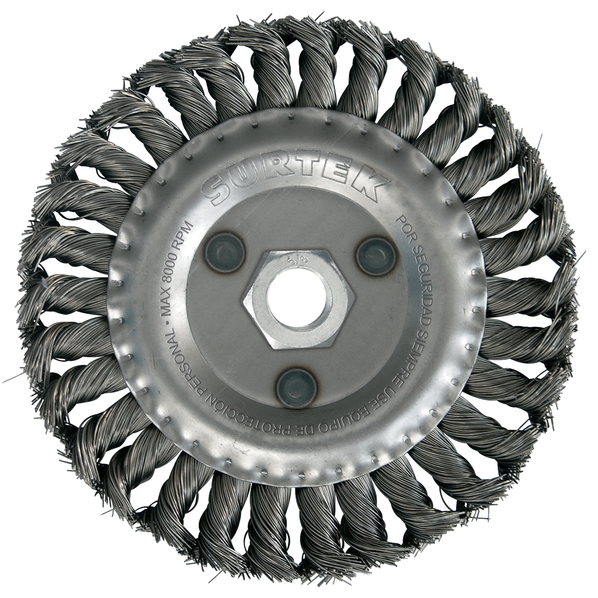 Carda circular trenzada alambre grueso 6" x 0.51 mm con rosca 5/8" Surtek