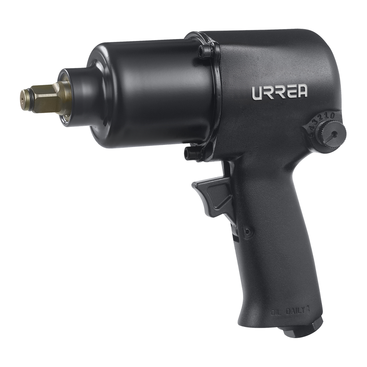 -Cuadro 1/2". Torque máximo 385 ft-lb (520 N.m). Conexión de la entrada de aire 1/4 NTP. Velocidad en vacío 9300 rpm. Mecanismo de impacto single hammer. Presión máxima de trabajo 90 PSI. -Peso 1.64 kg. Consumo de aire 6.3 L/s. Diámetro interno de la manguera 10 mm. -Nivel de ruido 98 dB(A). -Se utiliza en el sector automotriz principalmente, con la función de apretar fácil y rápido los tornillos y tuercas. Brindando seguridad de ajuste.