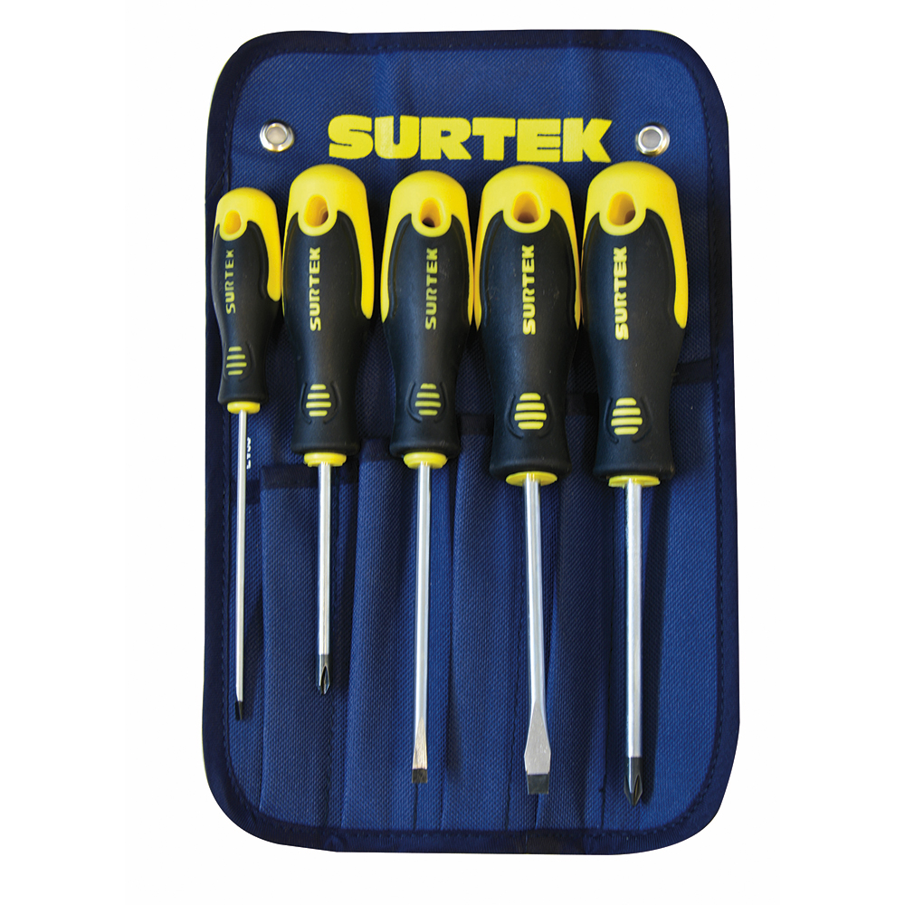 Destornillador con mango azul, punta cabinet barra redonda 1/8" x 4" Surtek