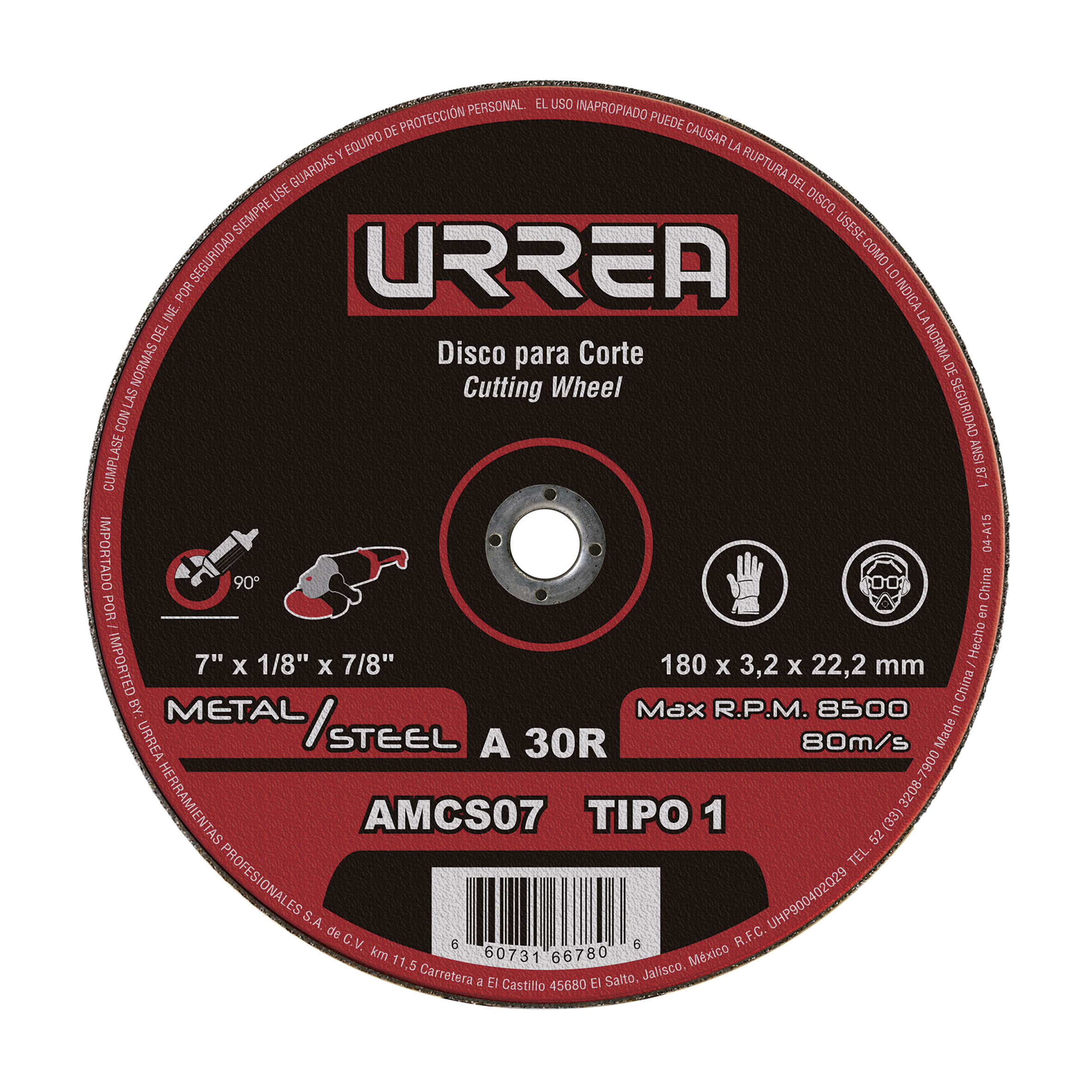 Disco abrasivo tipo 1 para acero inoxidable, 4-1/2" x 3/64" Urrea 50 pi